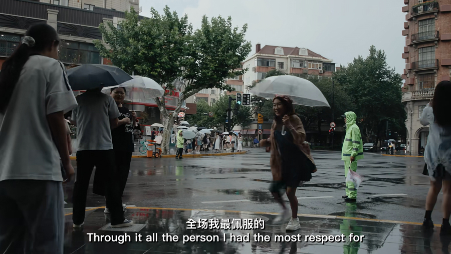 国际人下午3点,骤雨造访,打卡暂停,人群四散,屋檐下挤满躲雨的脑袋。快克把伞柄固定在相机顶部,继续工作。