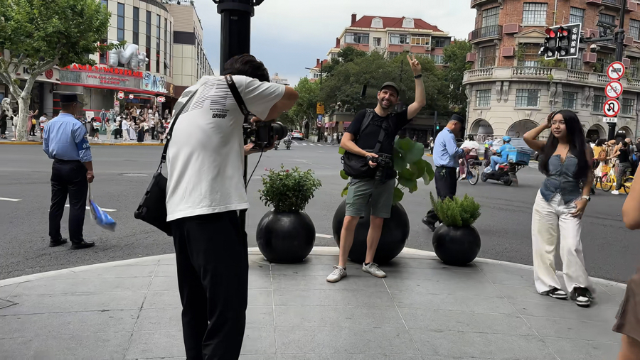 快克突然想起来,拍了这么多“众生相”,唯独没给自己来一张,于是他随机找了一位摄影师:“能帮我和它(武康大楼)拍一张吗?” 快克虽是专业摄影师,自己却难得被指挥摆pose,对着镜头,他笑得僵硬却很纯真。